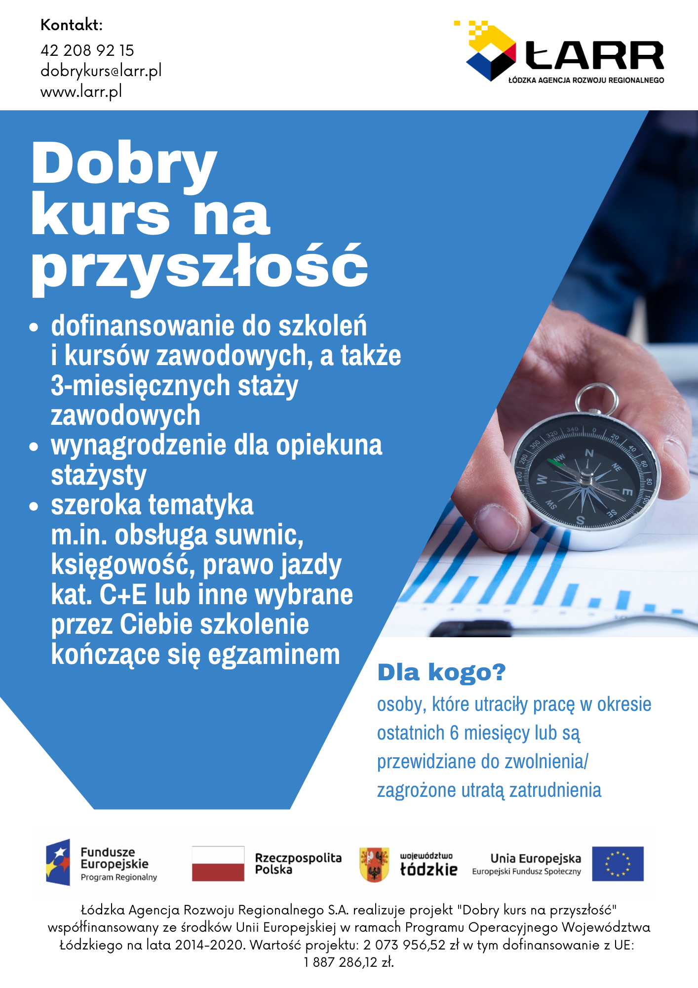 Możesz podnieść swoje kwalifikacje między innymi w obszarze prawa jazdy kat. C, C+E i D, w obsłudze wózka widłowego, suwnic czy żurawia HDS, operatora ładowarki, koparkoładowarki czy też księgowości lub opiekuna medycznego/opiekuna osoby starszej. Zapraszamy https://larr.pl/dotacja-outplacement-lodzkie, (42) 208-92-15 lub poprzez e-mail dobrykurs@larr.pl